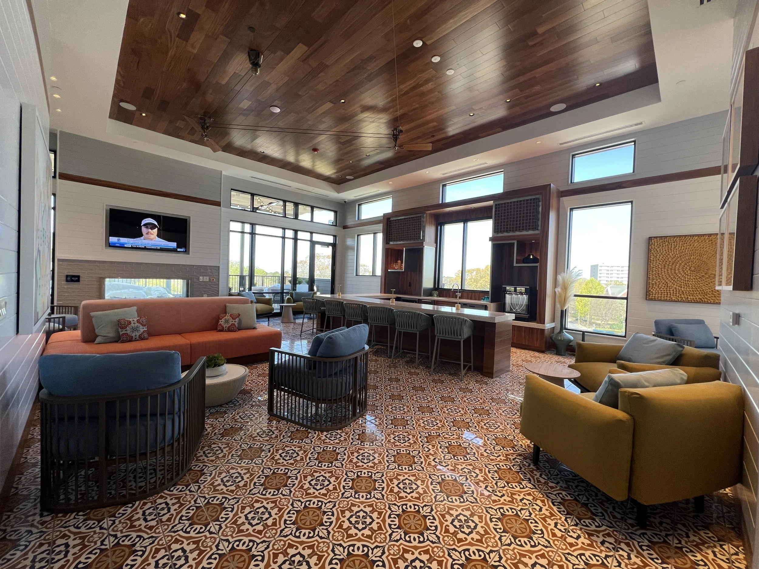 Inspired by the Arts and Crafts philosophy, the design for this Community located at the heart of Historic Decatur, brings a level of sophistication that encompasses the use of High level finishes, natural materials, naturalistic wallpaper accents and a strong Art component that embrace the mentality of simple but thoughtful design.